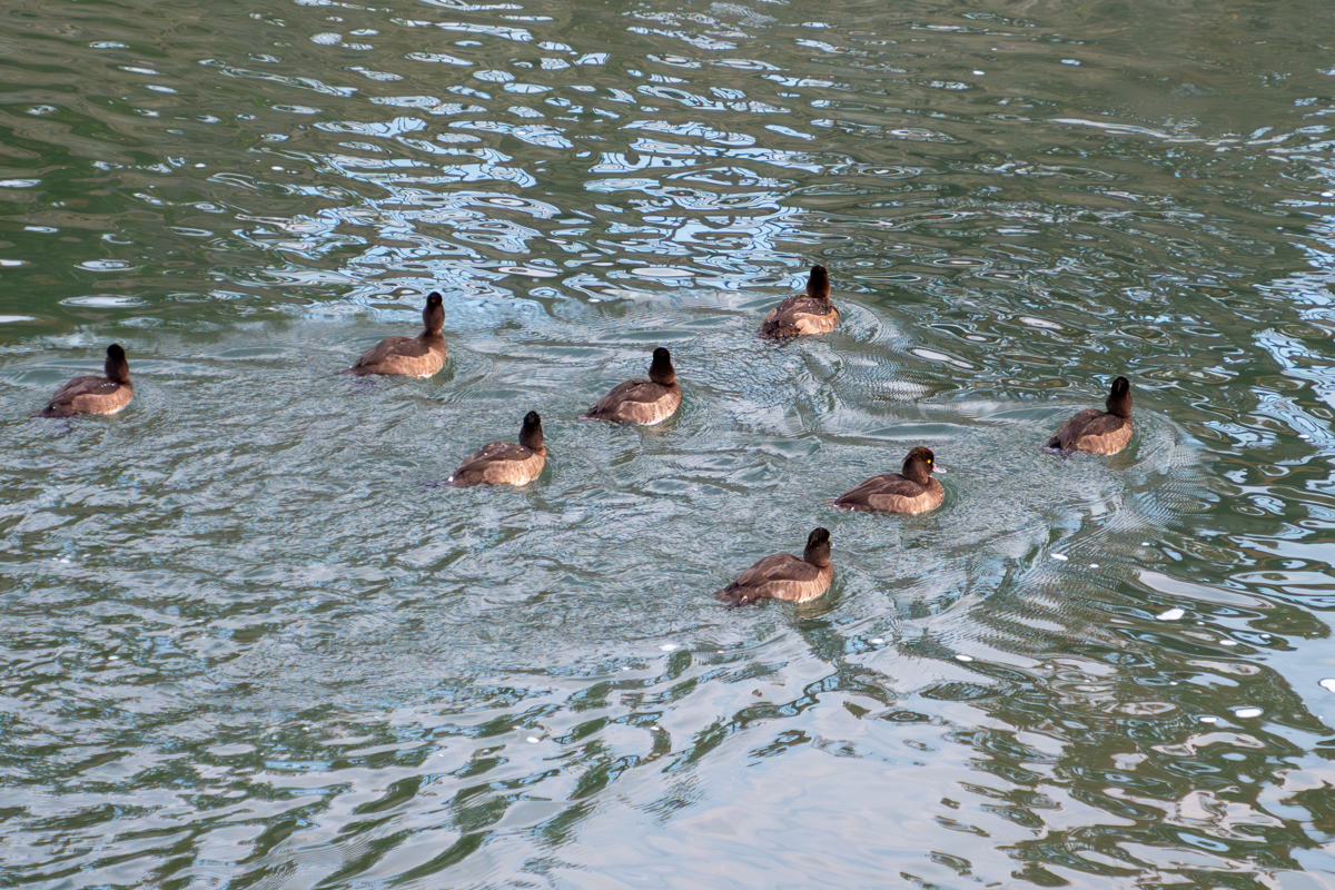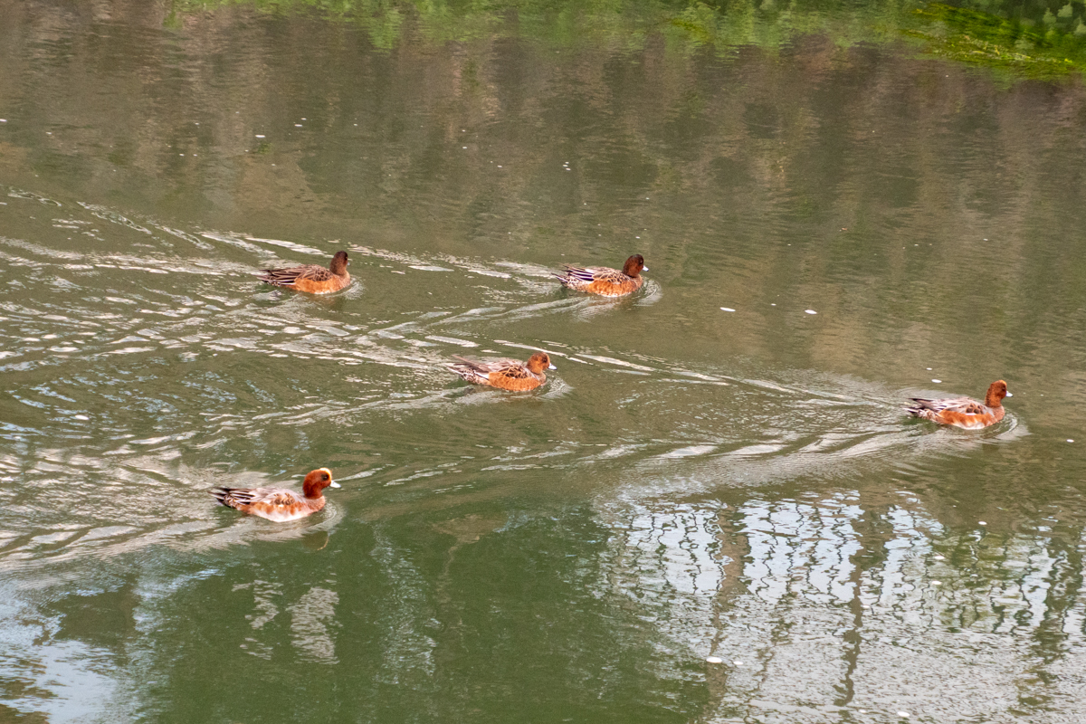 (4)疎水にカモが集まっていた。8羽ともヒドリガモ。(岡崎)