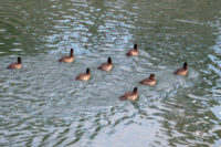 冬にこの辺りで見かけるカモは,マガモ(アイガモかも),カルガモ,ヒドリガモ,キンクロハジロ,オナガガモの5種類です。