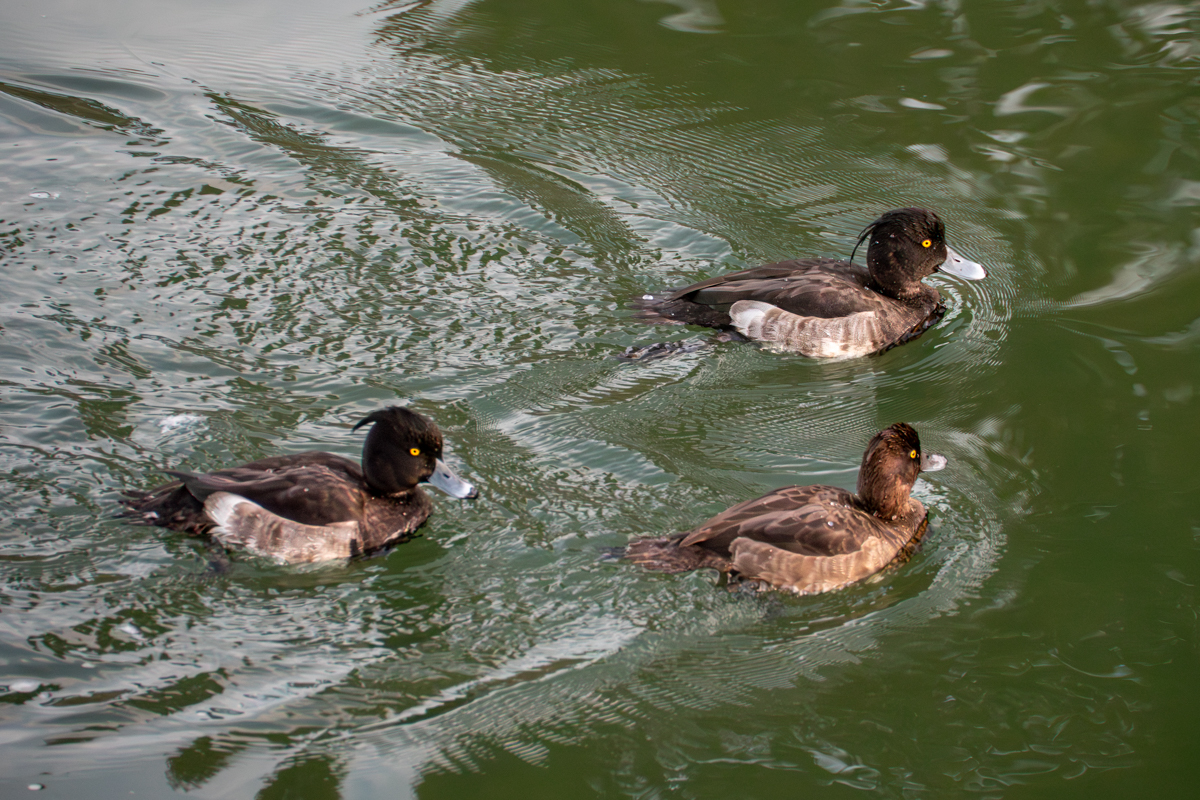 岡崎の疎水に、ヒドリガモとキンクロハジロが飛来しました。