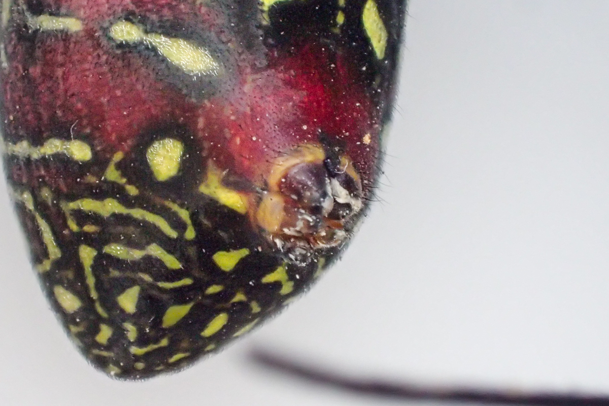 [写真3]は成体腹部,糸いぼまわりの模様です。