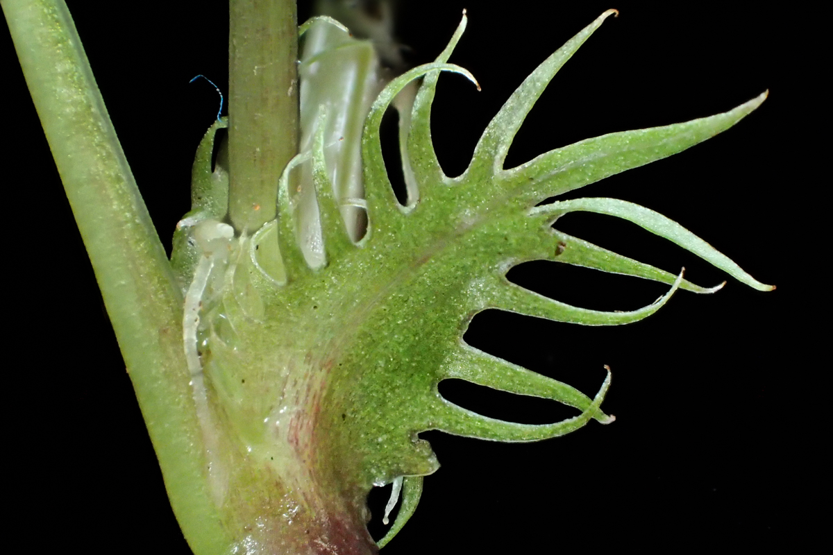 E.托葉は羽裂する。花柱の上部はほとんどふくらまない。