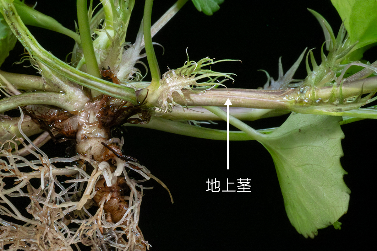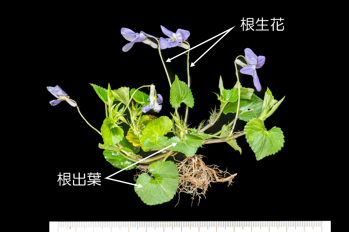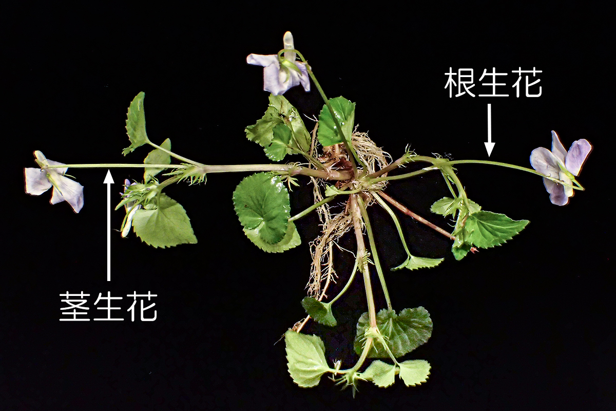 J.花は根生および茎生、すなわち、花は伸長した茎の葉腋につくほか、根出葉の葉腋にもつく。