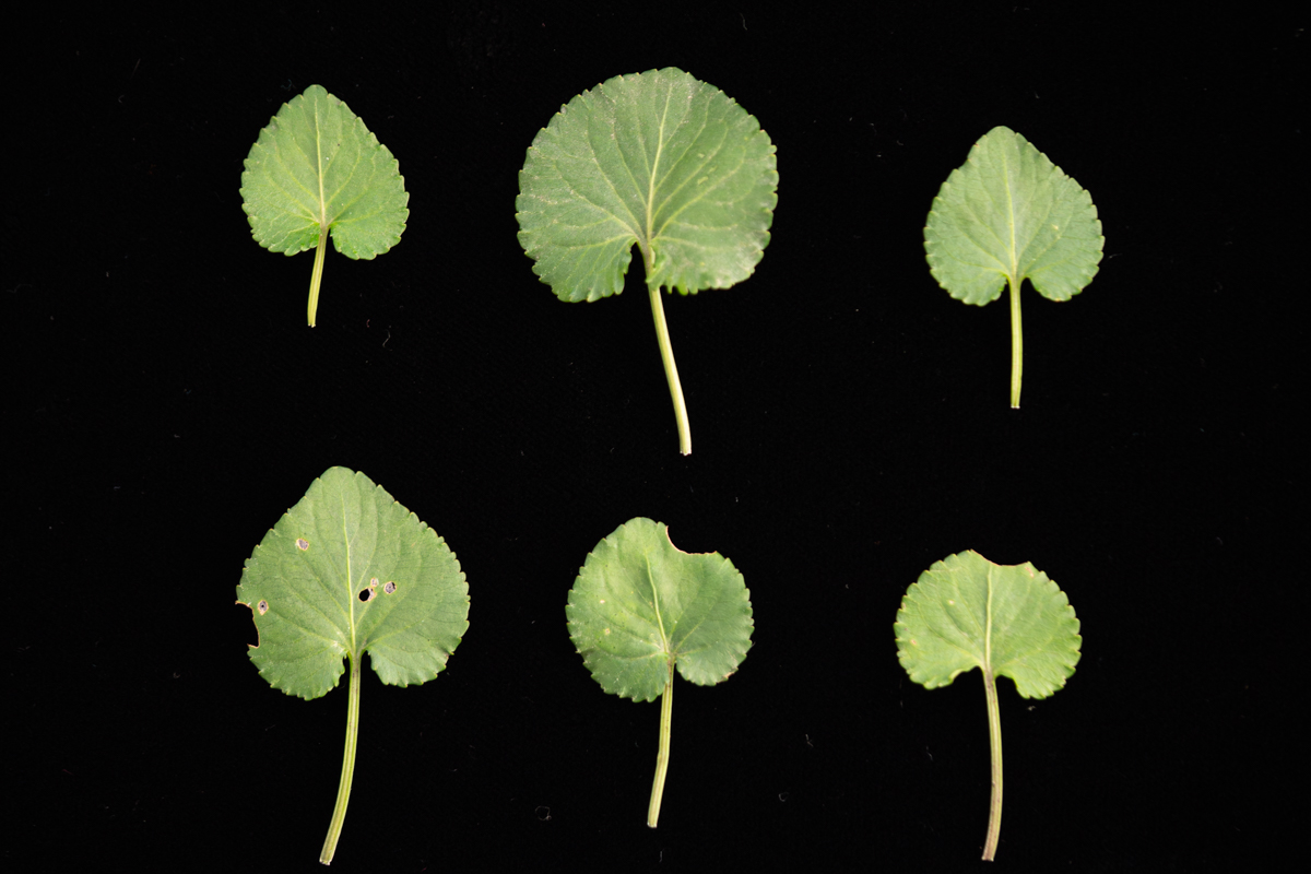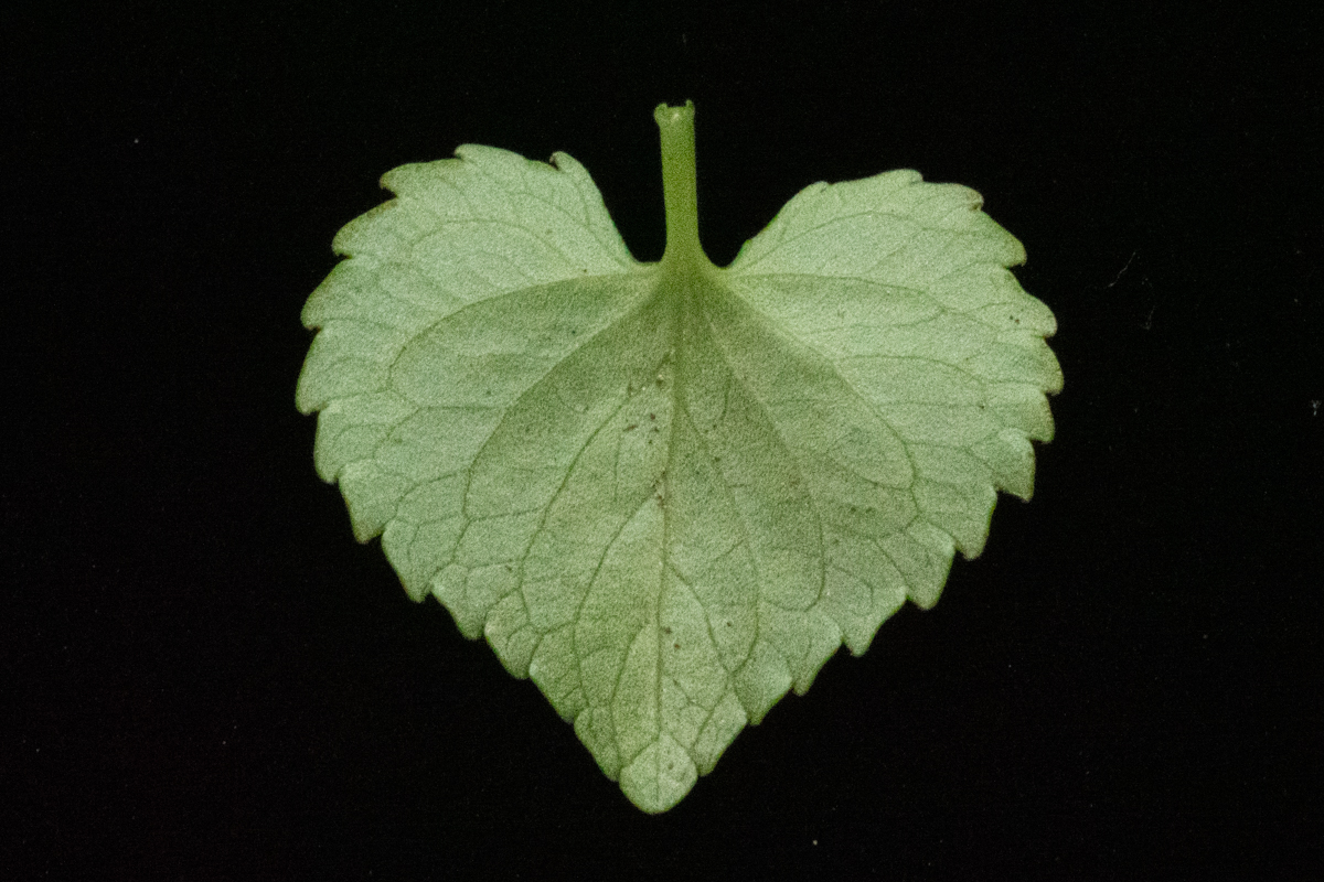 ・葉は卵形~腎形で,縁は波状の低い鋸歯があり,先は鋭形~鈍形,基部は深い心形