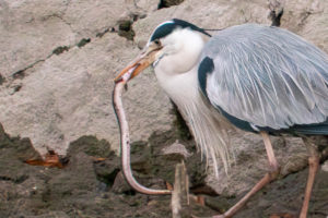 ウナギとアオサギ